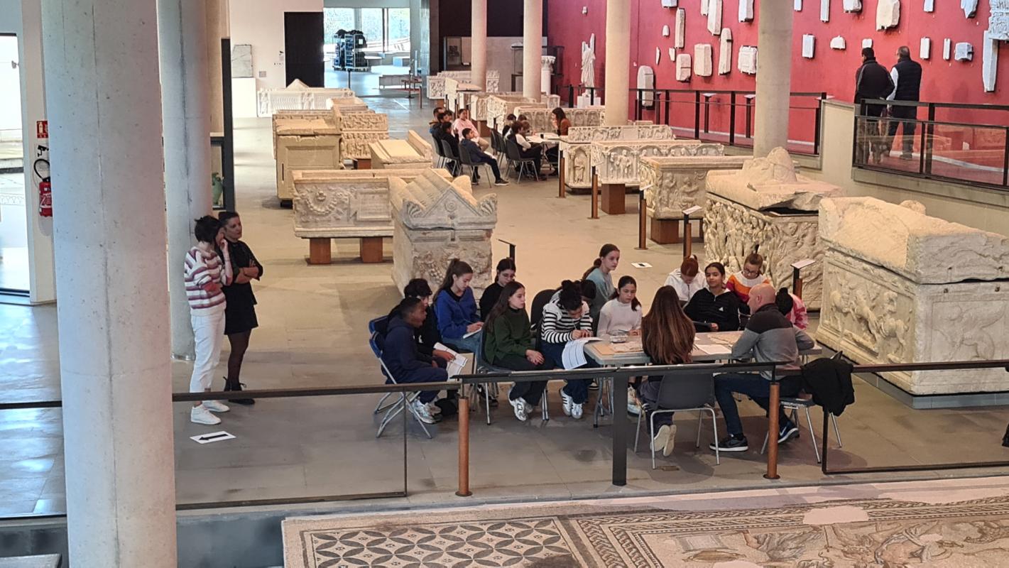 Après une présentation en classe des missions affectées à un musée et la façon dont celui-ci les remplit, 120 élèves du collège Ampère d’Arles et leurs enseignants ont été invités à rencontrer des professionnels œuvrant aux différentes étapes du parcours des objets archéologiques, de leur découverte jusqu’à leur exposition dans les vitrines du musée (archéologues, conservateurs-restaurateurs, régisseurs des œuvres, médiateurs culturels, agents d’accueil et de surveillance, agents techniques, chargés des événements).